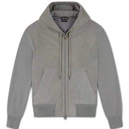 [홍콩명품.TOM FORD] 톰포드 25SS 로고 레더 가죽 레이어드 후드 집업 자켓 (그레이), BM23743, KSM, 레플리카의류,미러급사이트